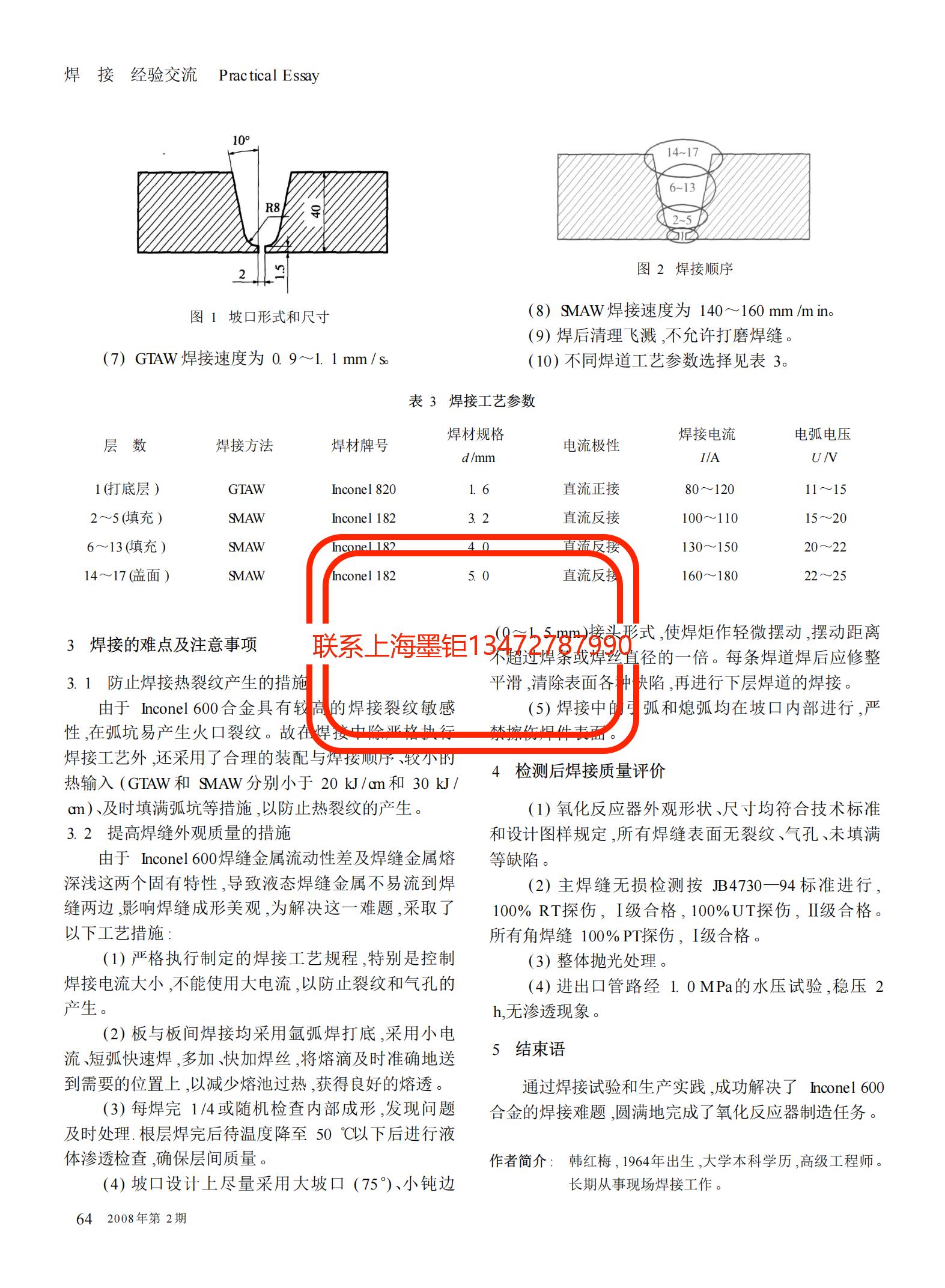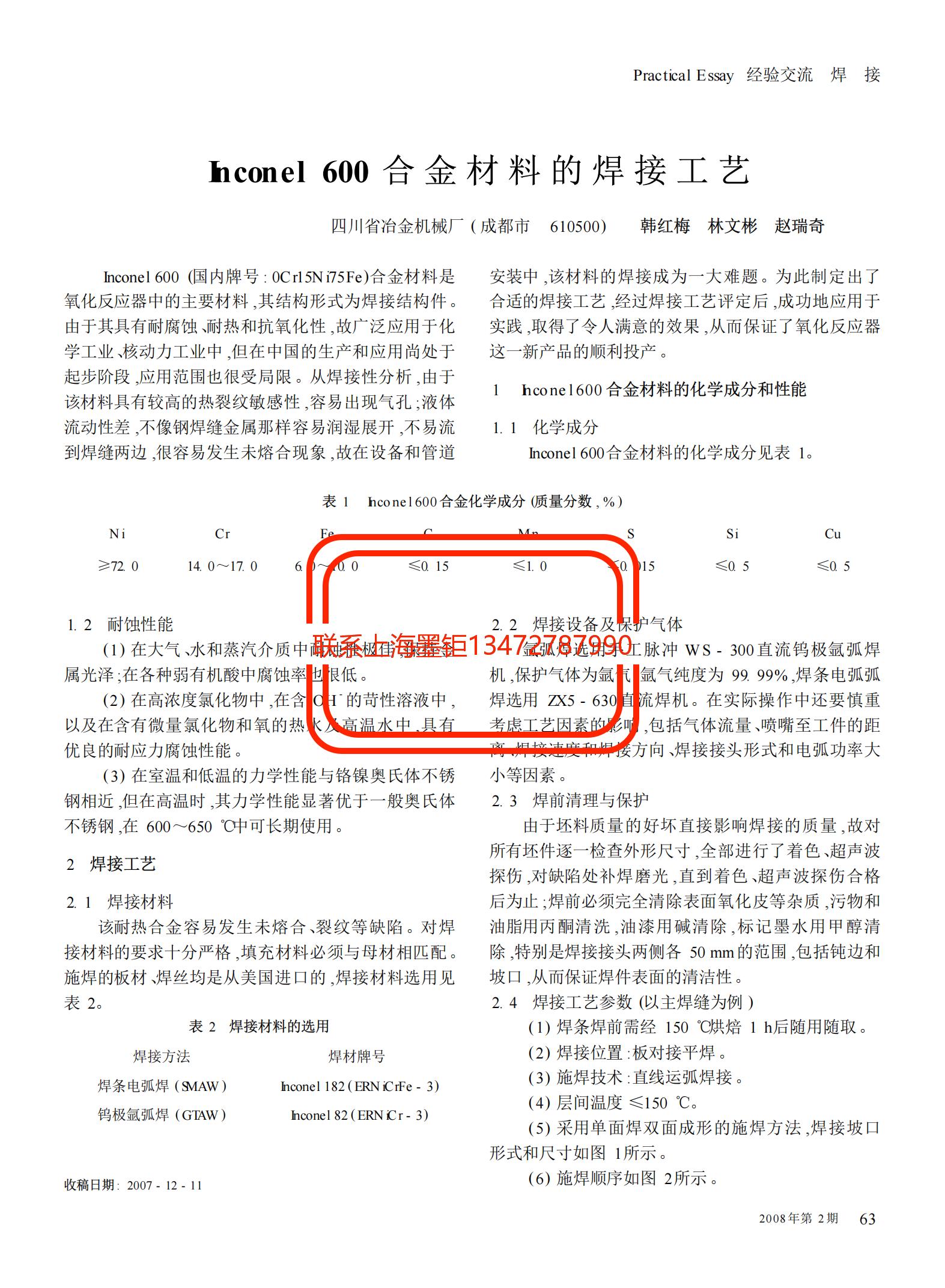技術(shù)文章 Inconel600合金材料的焊接工藝 更新時(shí)間 2021-07-12 10:04:30 閱讀 691 上一篇:用磨粒為ABN800的立方氮化硼砂輪磨削Inconel718 下一篇:復(fù)合管管端堆焊Inconel625合金工藝及性能研究