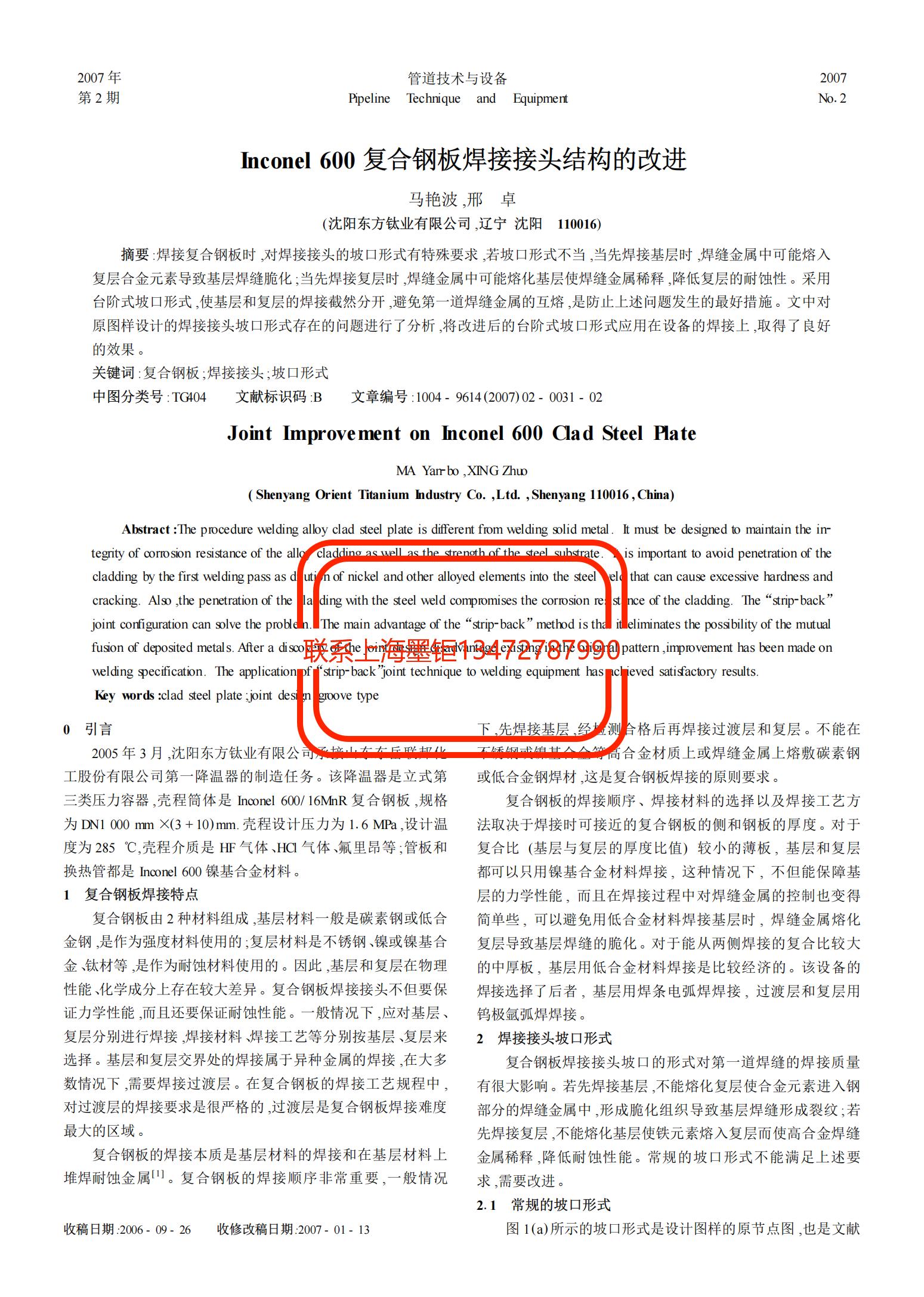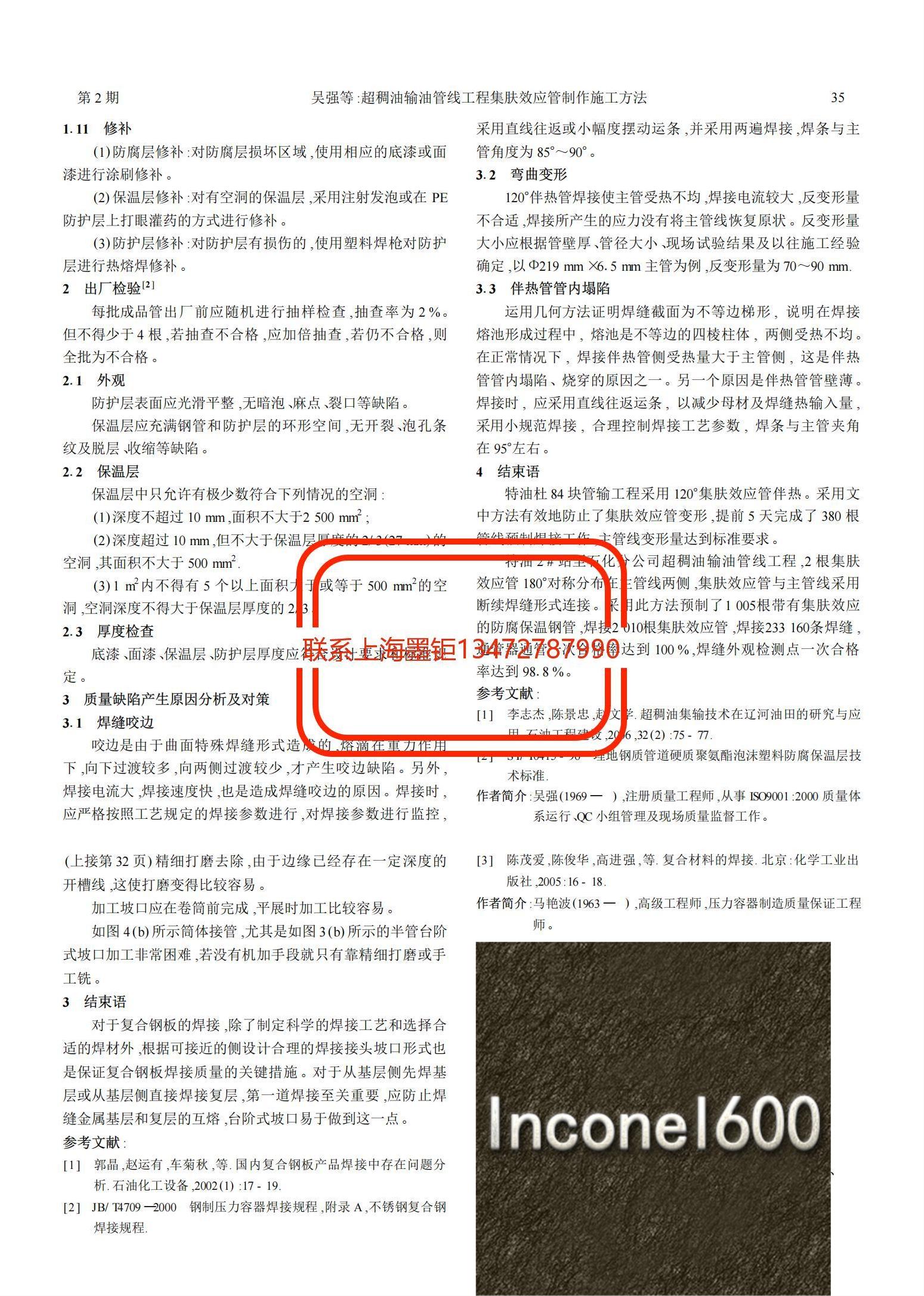 技術(shù)文章 Inconel600復(fù)合鋼板焊接接頭結(jié)構(gòu)的改進(jìn) 更新時(shí)間 2021-07-12 10:11:57 閱讀 745 上一篇:復(fù)合管管端堆焊Inconel625合金工藝及性能研究 下一篇:Inconel600鎳基合金熱軋板表面起皮缺陷原因分析
