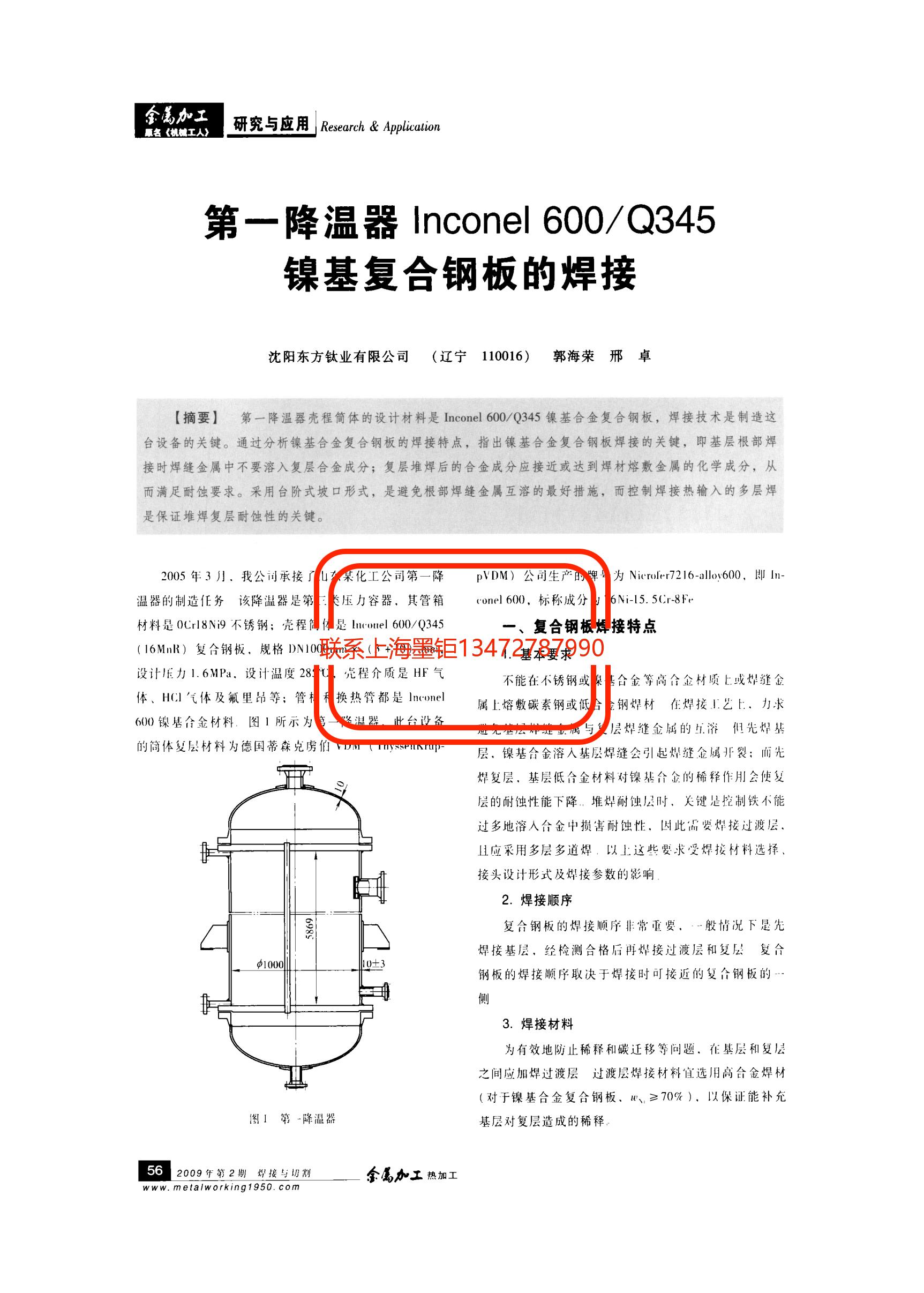 技術(shù)文章 第一降溫器Inconel600_Q345鎳基復(fù)合鋼板的焊接 更新時(shí)間 2021-07-12 10:28:31 閱讀 825 上一篇:高溫大氣和N_2中Inconel690_1Cr13不銹鋼的微動磨損特性 下一篇:INCOLOY825多波厚壁波紋管壓制過程