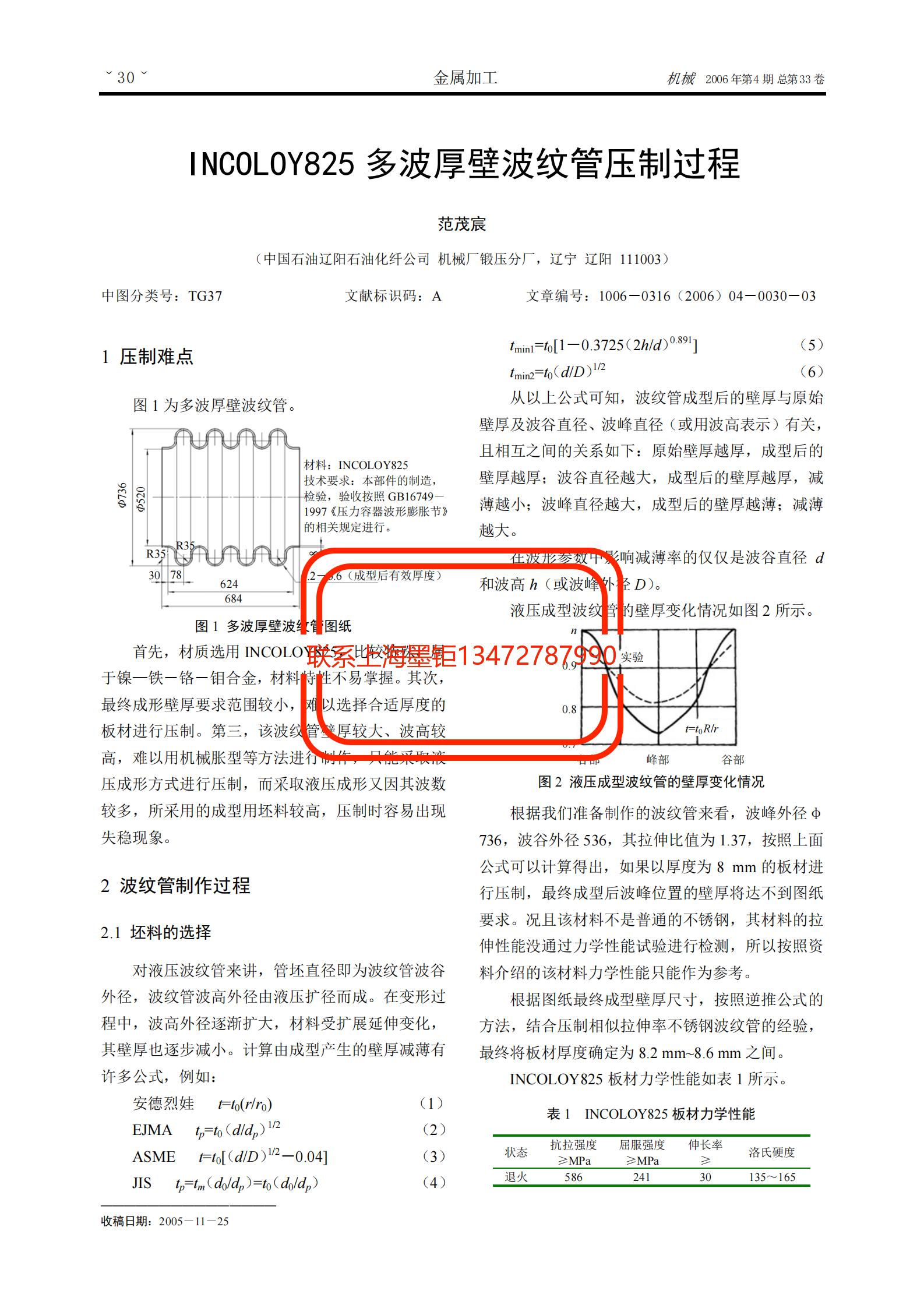 技術(shù)文章 INCOLOY825多波厚壁波紋管壓制過程 更新時間 2021-07-13 06:48:56 閱讀 787 上一篇:第一降溫器Inconel600_Q345鎳基復(fù)合鋼板的焊接 下一篇:Incoloy825高壓空冷絲堵泄漏分析及處理
