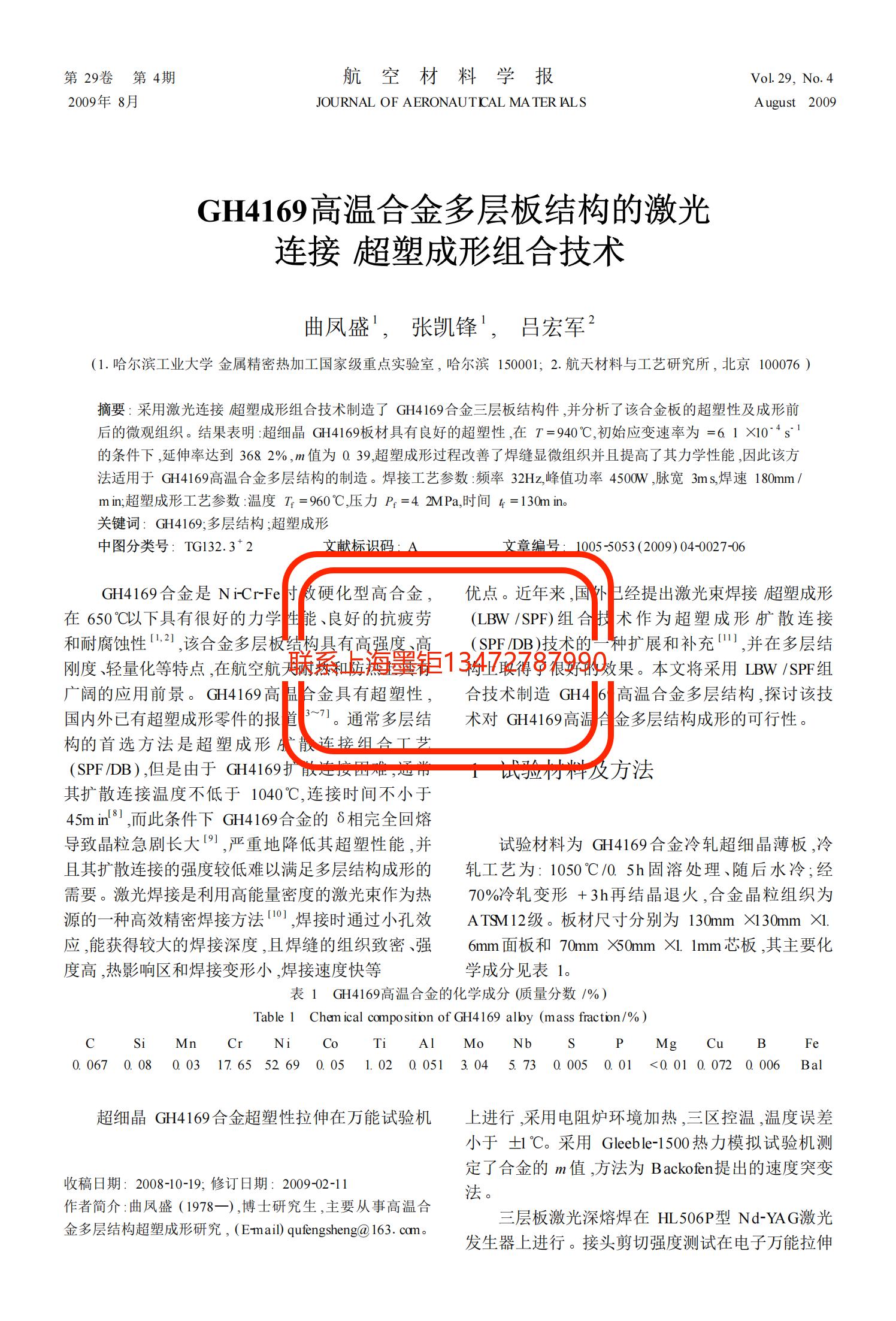 技術(shù)文章 GH4169高溫合金多層板結(jié)構(gòu)的激光連接_超塑成形組合技術(shù) 更新時(shí)間 2021-07-13 07:09:01 閱讀 875 上一篇:GH4169高溫合金多層板結(jié)構(gòu)的激光連接_超塑成形組合技術(shù) 下一篇:形變及退火工藝對(duì)Fe47Mn30Co10Cr10B3雙相高熵合金組織演變的影響