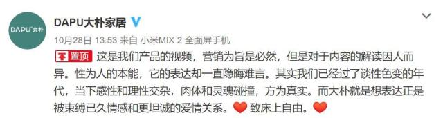 DAPU作為家紡品牌和性頗有距離,而看到性的第一直覺更可能是杜蕾斯等性用品。