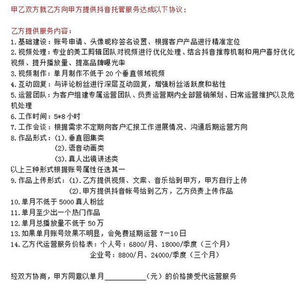 某抖音代運營商服務(wù)