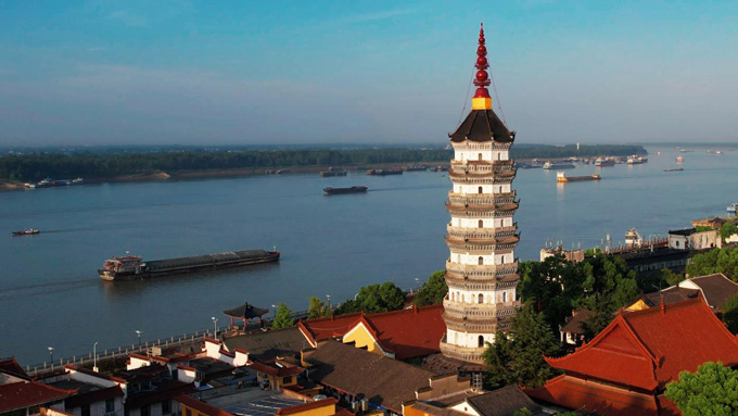 振風塔上,迎接宜城江畔的第一縷曙光;